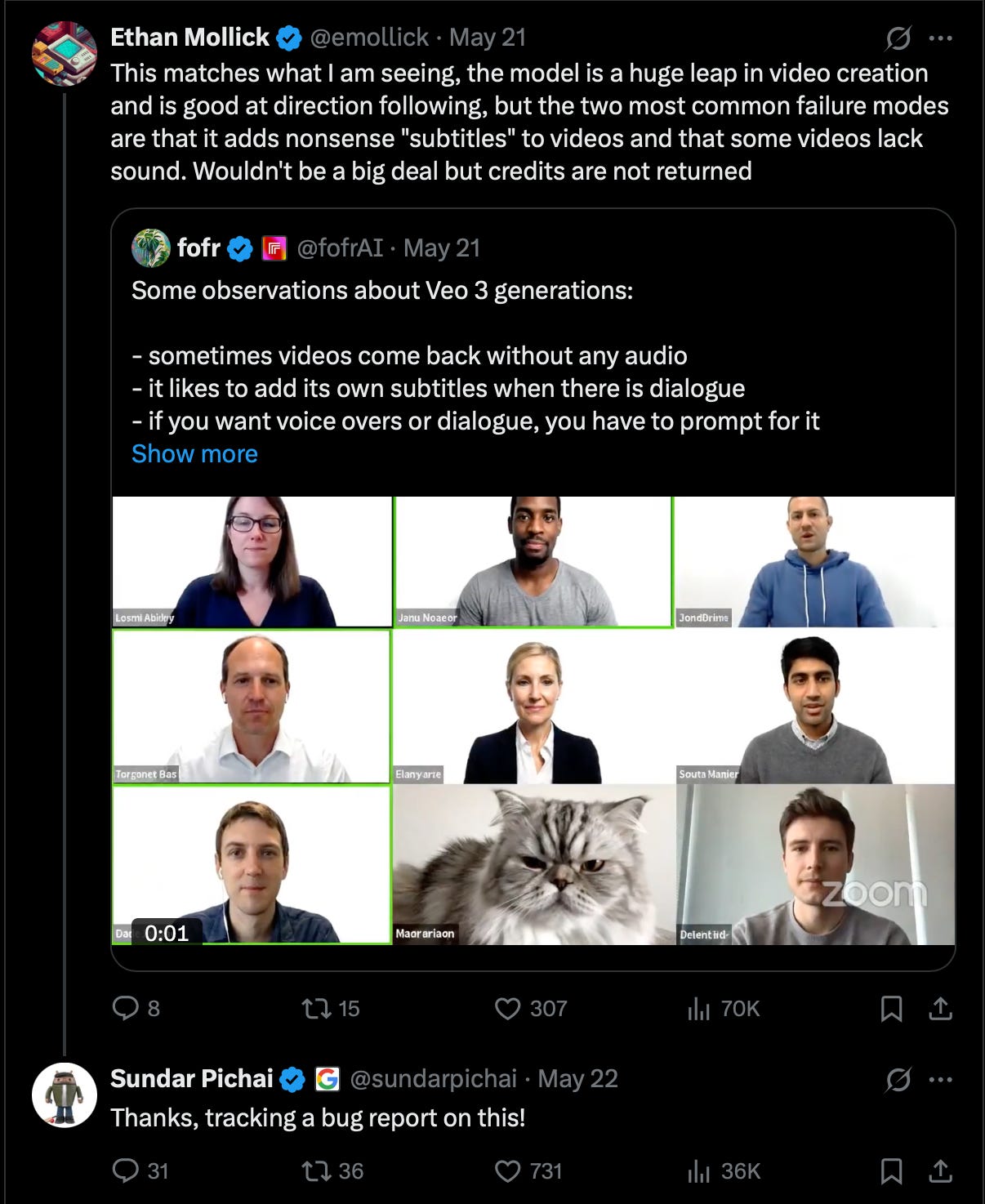 ✅ Veo 3, on the other hand, is existential. It’s a net-new AI product that could shape Google’s future. That’s where Sundar’s involvement, even in tracking bug reports, make the most sense.