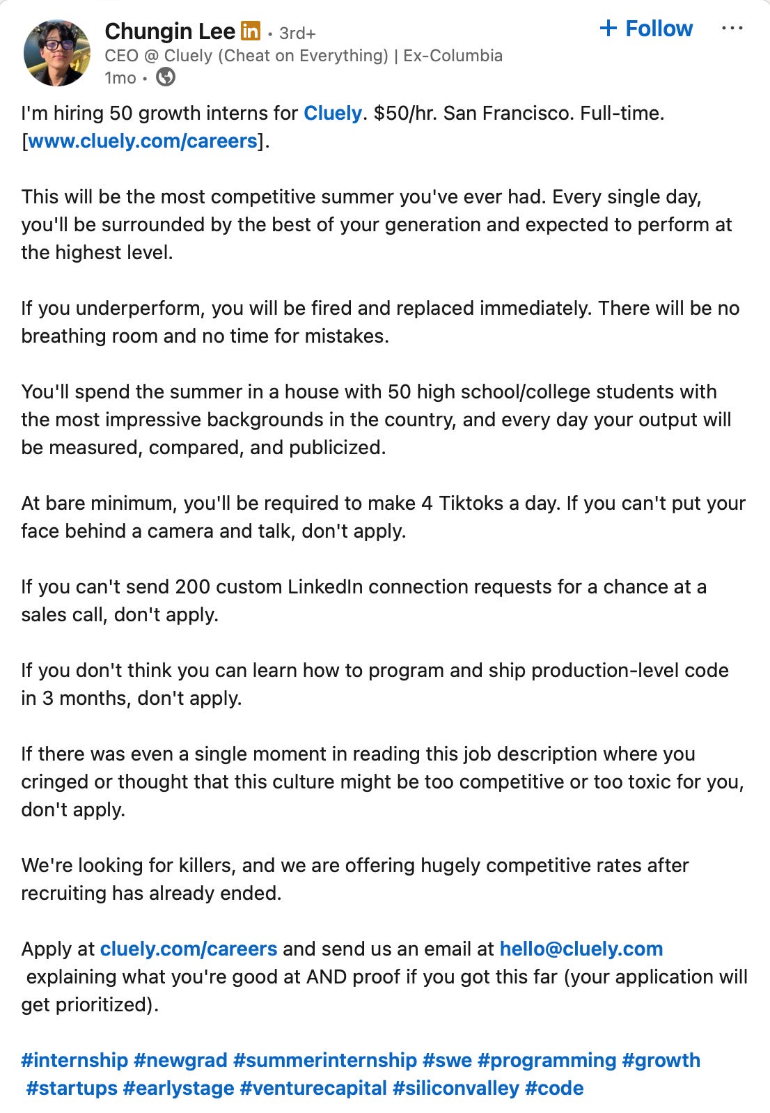 The founder, Roy Lee, was kicked out of Columbia after using an earlier version of Cluely (then Interview Coder) to cheat on a technical interview—and get a job at Amazon.