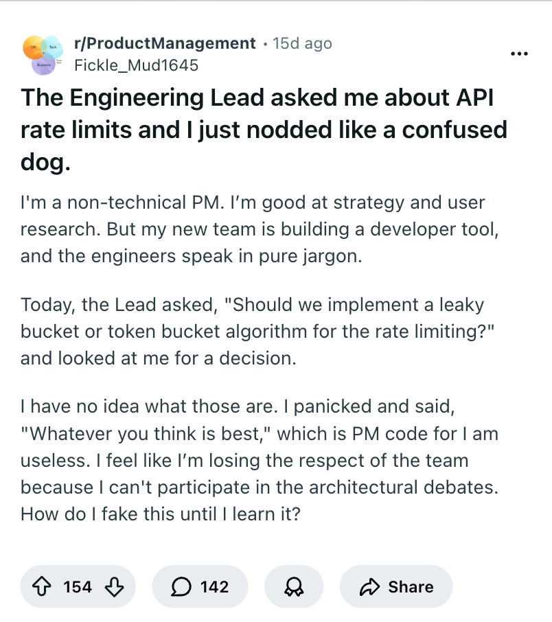 It’s very common for non-technical PMs to freeze when engineering asks for your input on a technical question.