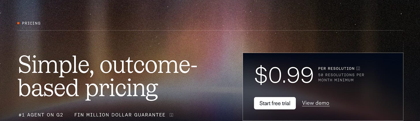 These models are still nascent, but Fin AI, Decagon, and Chargeflow are starting to lead in this area, although Iâd argue theyâre still stuck in results-based metrics like âmeetings set upâ or âtickets handledâ. The future of outcome-based is customers paying for real, tangible business results: