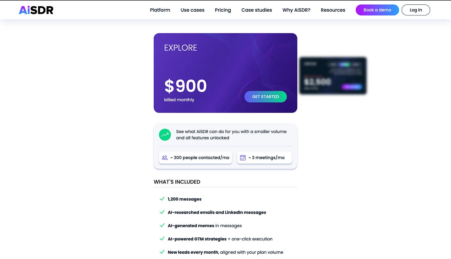Example: AiSDR provides an outbound sales agent to make cold calls and send emails that costs $900/month.