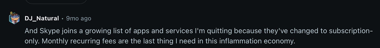 This Reddit post summarizes perfectly why consumers are revolting against subscription products: inflation is real and consumers canât justify additional subscriptions.