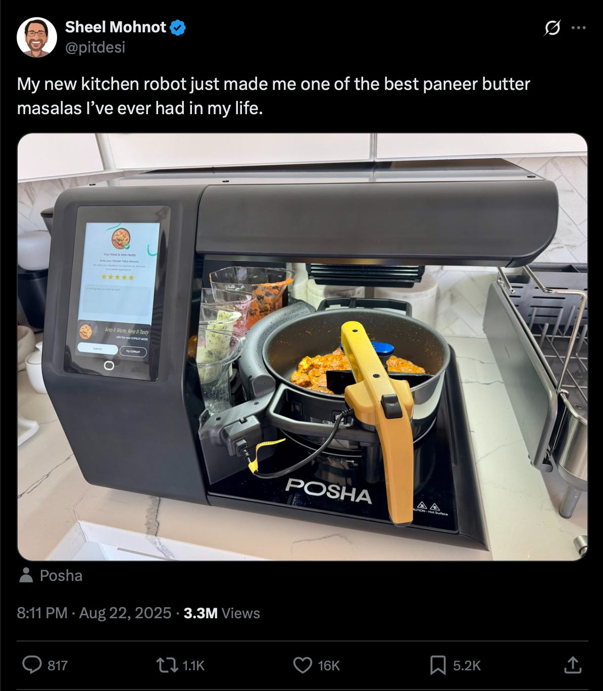 Meet Posha: a $1,750 countertop robot that cooks meals after you load it with ingredients.