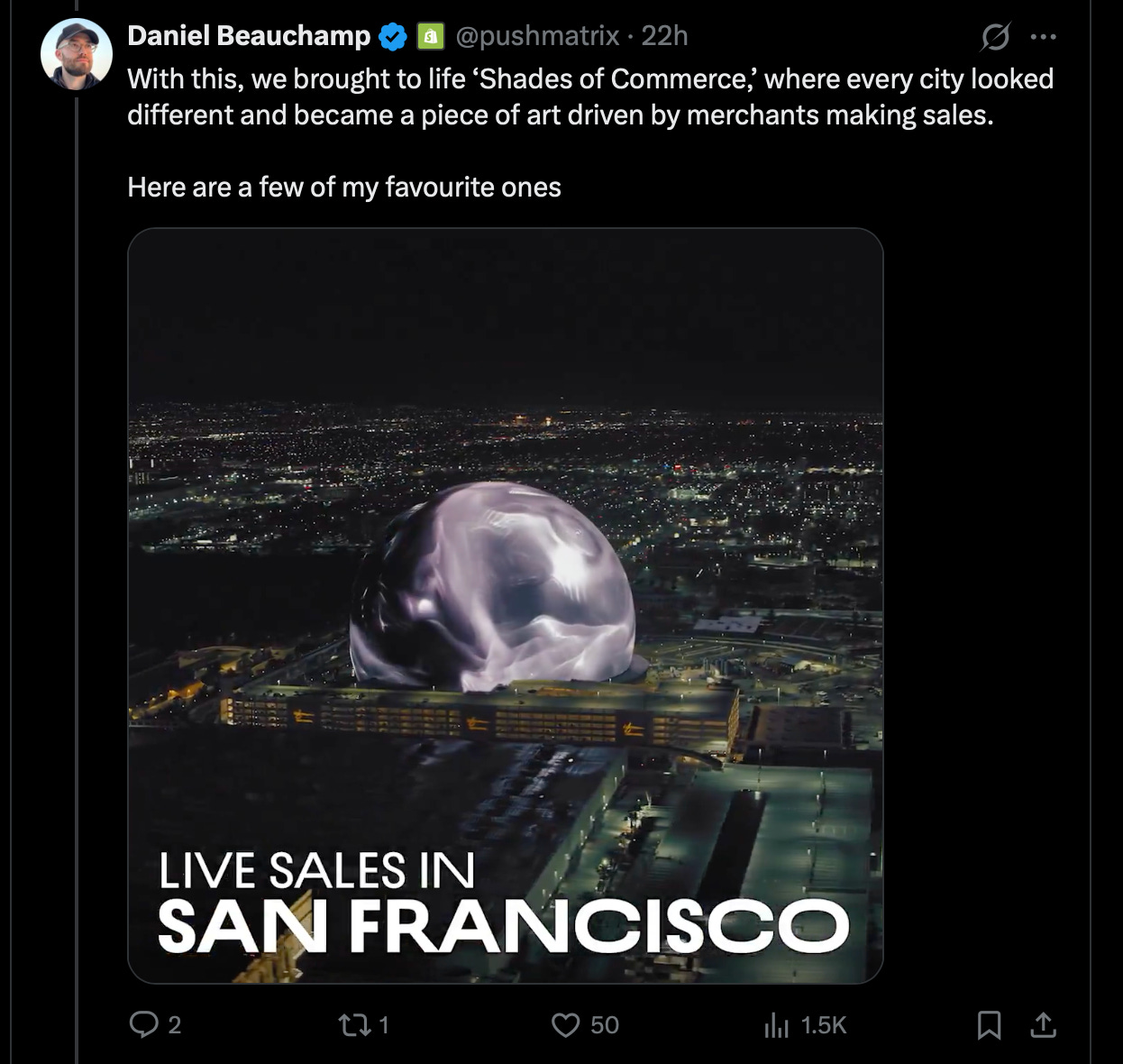 On one of the most crowded, sales-heavy, marketing-driven days of the year, Shopify manages to stand out. The globe isn’t just watched, it’s shared. People post screenshots. Hunt for Easter eggs. Journalists reference the stats. Executives tweet it.
