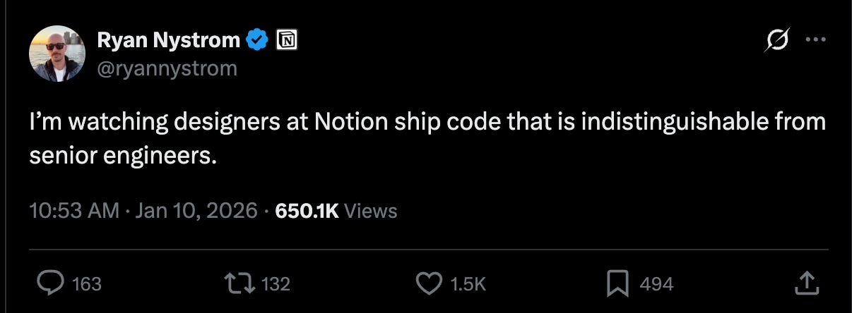 We’re already seeing this shift, from CEOs like Tobi Lutke at Shopify to designers shipping code at Notion.