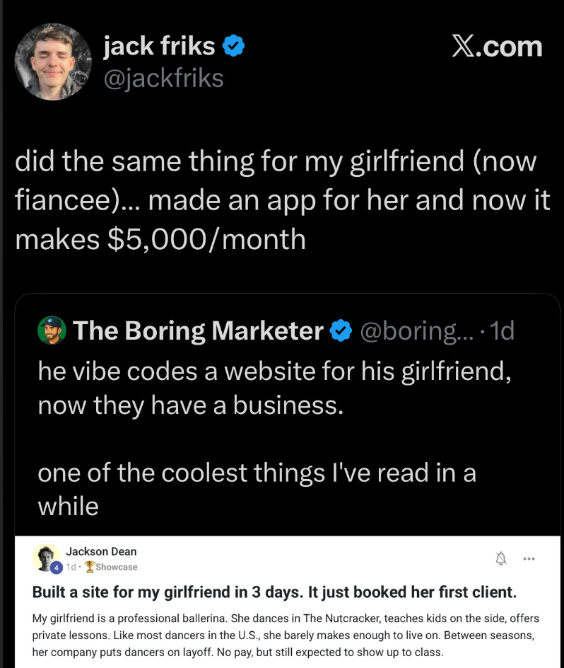 Anyone can now spin up a landing page, validate demand, and ship something real in days, not months.