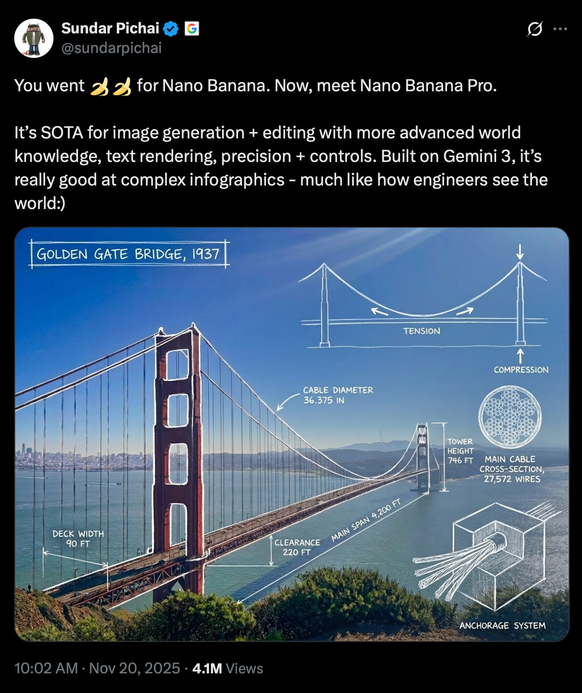 And even Sundar Pichai showed how beautiful infographics can be created from famous locations like the Golden Gate Bridge.