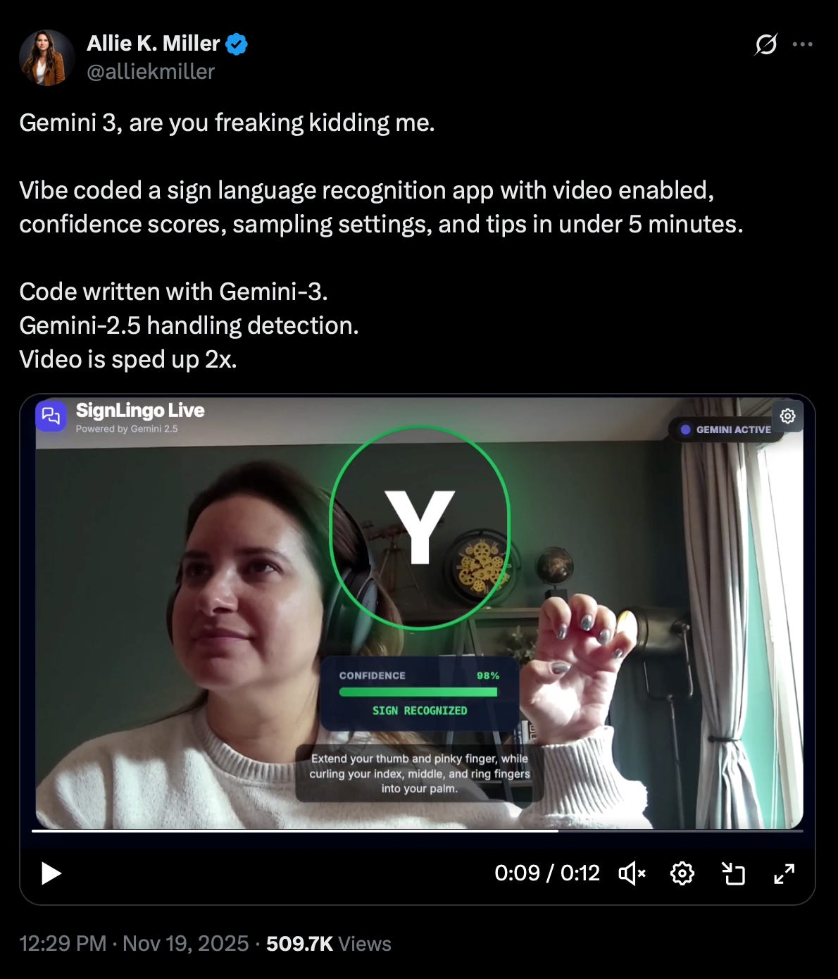 Similarly, Allie K. Miller vibe coded an app that recognizes sign language. With Google’s image recognition capabilities, the possibilities are endless.