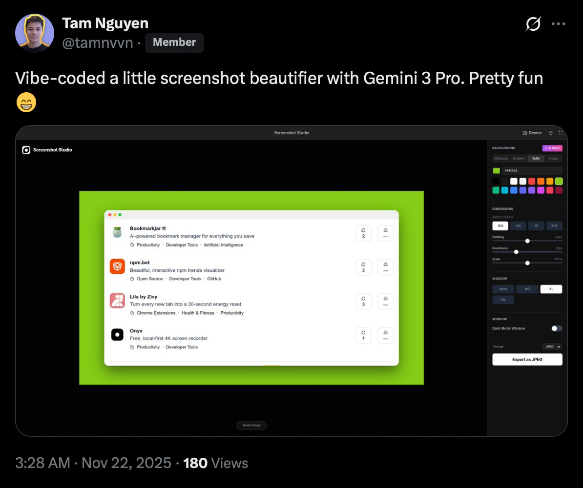 Tam Nguyen vibe-coded a screenshot beautifier for decks.