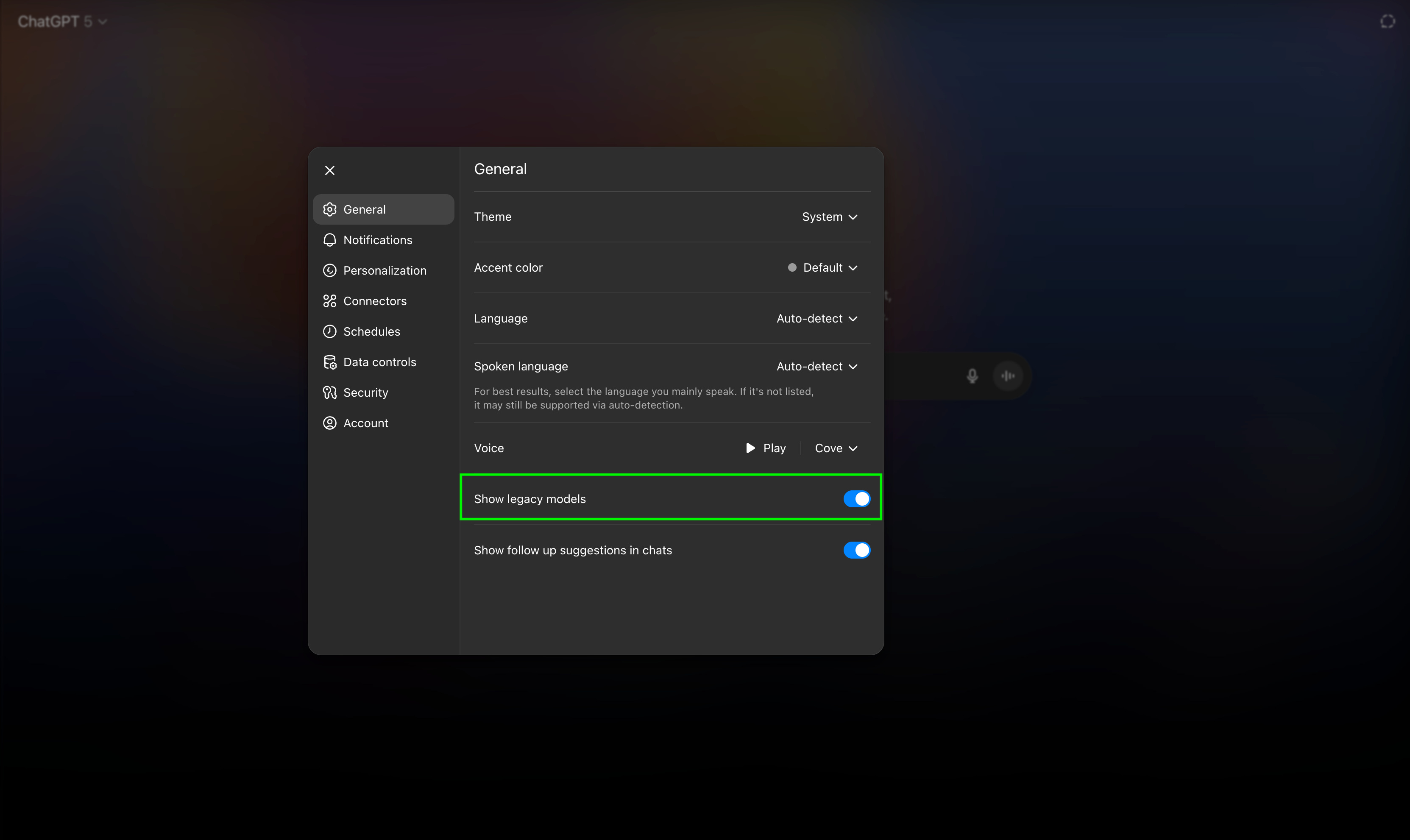 But after a lot of passionate feedback from the user community, OpenAI rolled out the ability to show legacy models within the settings panel.